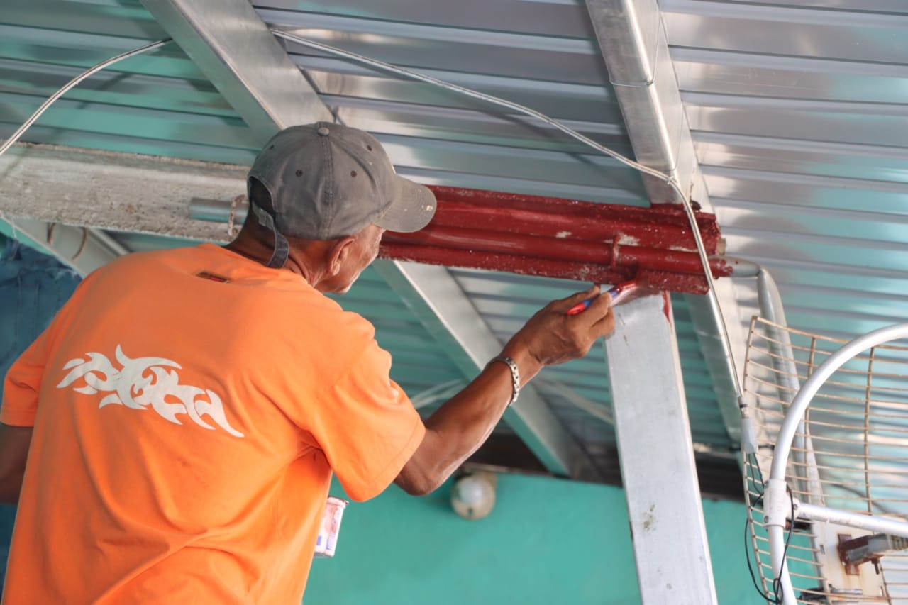 Además, se cambian las hojas de zinc, carriolas, caballetes, tubos, barandales, escaleras y se efectúan trabajos de pintura, arreglos a las escaleras y retaqueos.