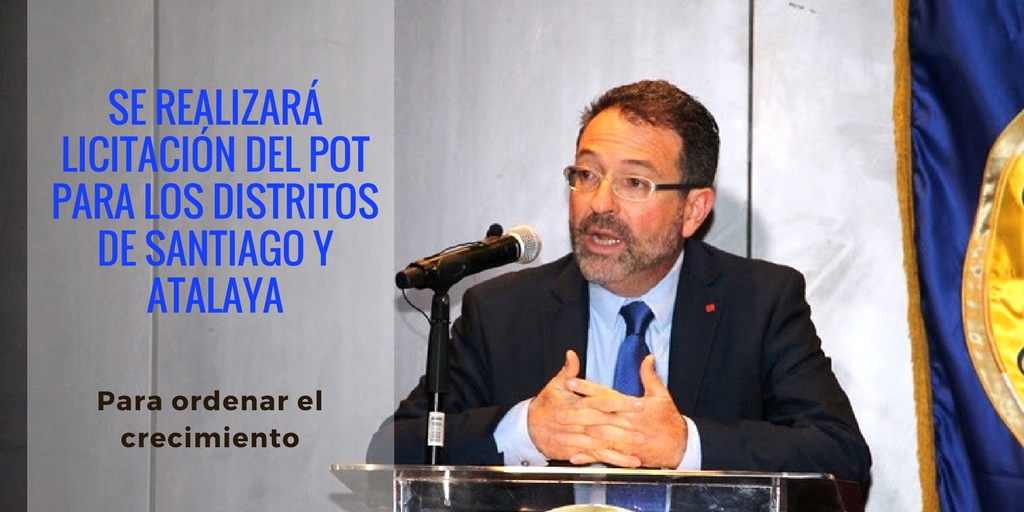 Como parte del proceso que se inició a finales del 2017, sobre el Plan de Ordenamiento Territorial (POT) de los distritos de Santiago y Atalaya, el próximo 15 de enero se llevará a cabo la licitación del mismo, el cual busca ordenar el crecimiento en estas ciudades.