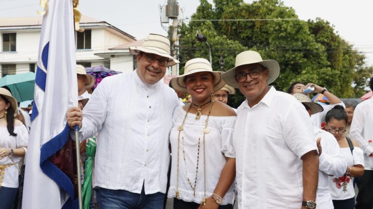 El desfile, que llenó de folclor y vestimentas típicas las principales calles de Aguadulce, fue liderado por la Ministra de Trabajo, Jackeline Muñoz de Cedeño, como abanderada oficial.