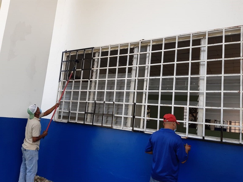 Quintana puntualizó que se trabaja en la instalación de rampas y pasamanos para facilitarle la movilidad a las personas con discapacidad y adultos mayores, reparación de techos y baños, pintura de salones, pabellones y puertas, entre otros detalles necesarios para que los planteles estén en óptimas condiciones para el programa de vacunación y para los estudiantes en el retorno progresivo y fiable a las clases semipresenciales.
