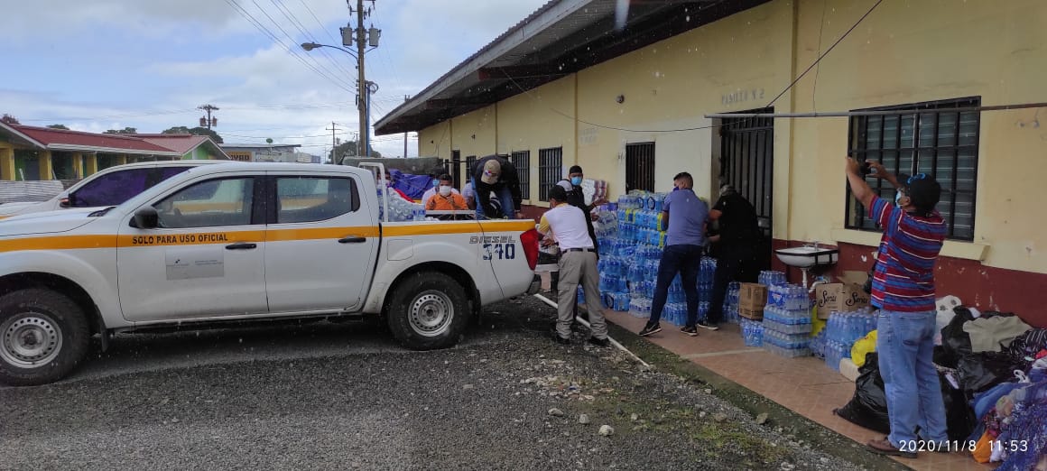 También se ha sumado con personal y equipo rodante en las labores de distribución de ayuda humanitaria desde centro de acopio del Despacho de la Primera Dama ubicado en el colegio Instituto David a los diferentes albergues temporales localizados en los distritos de Tierras Altas, Alanje, Barú, Gualaca y Renacimiento.