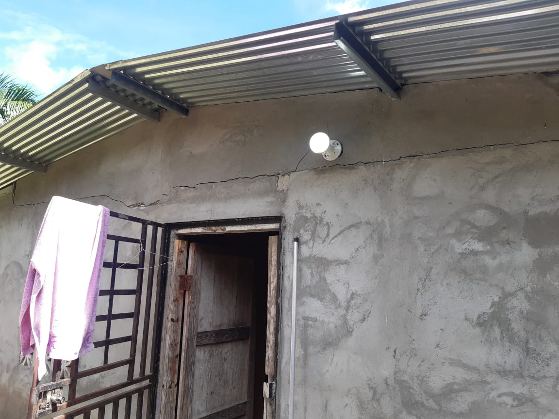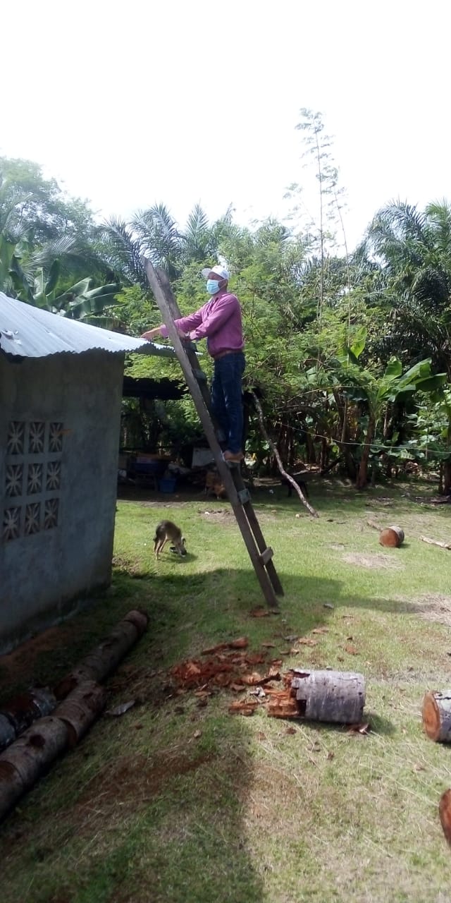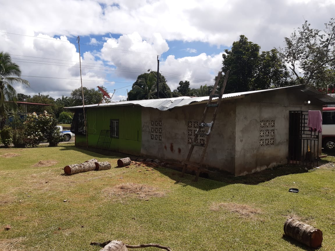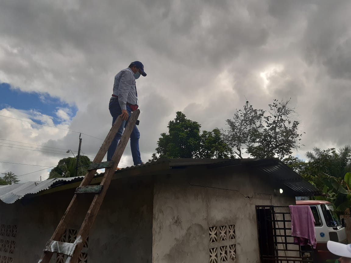 Según el informe de los técnicos, la casa, construida de bloques y techado de zinc con carriolas, resultó perjudicada parcialmente en el techo por la caída de una palma a un costado de la vivienda a raíz del evento sísmico, la cual luego de las evaluaciones técnicas el personal procedió a coordinar la ayuda en materiales para su reparación.