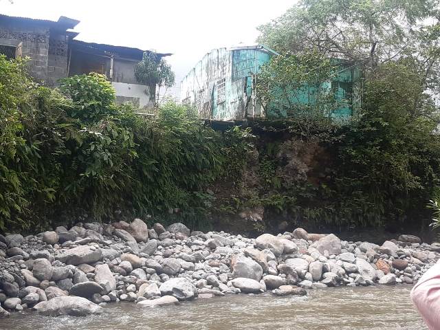 Las inspecciones del personal corroboraron que el río ha ido socavando la tierra donde están ubicadas las casas, lo que representa un peligro para los residentes.