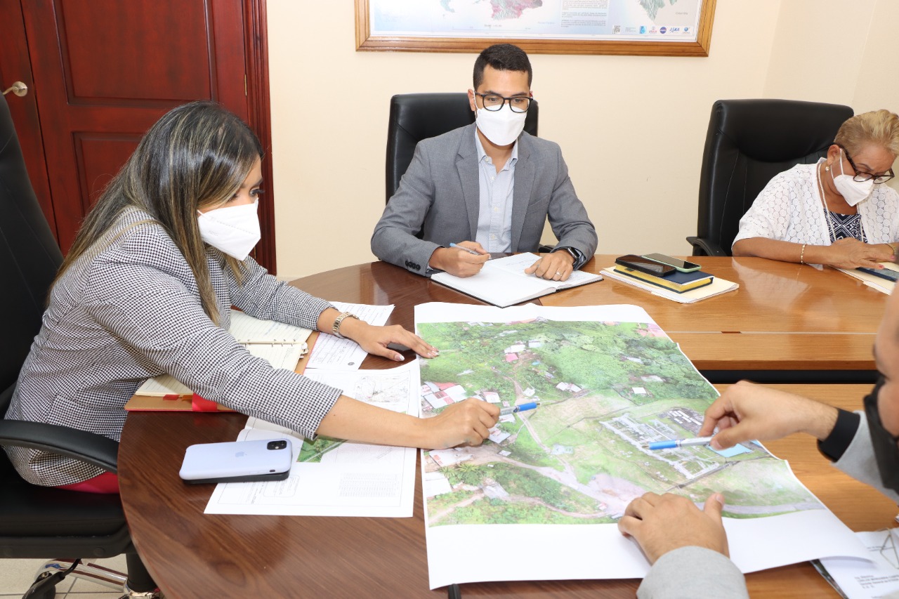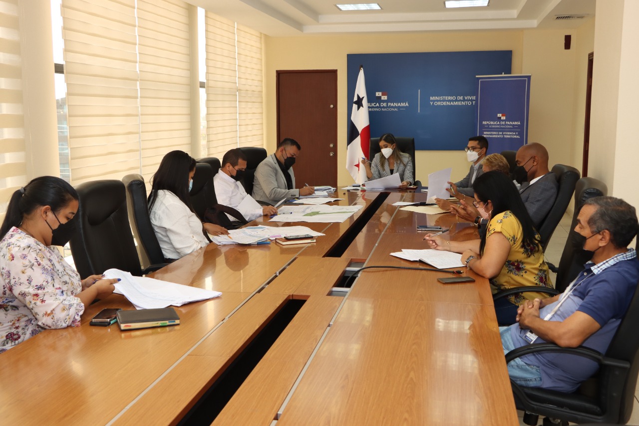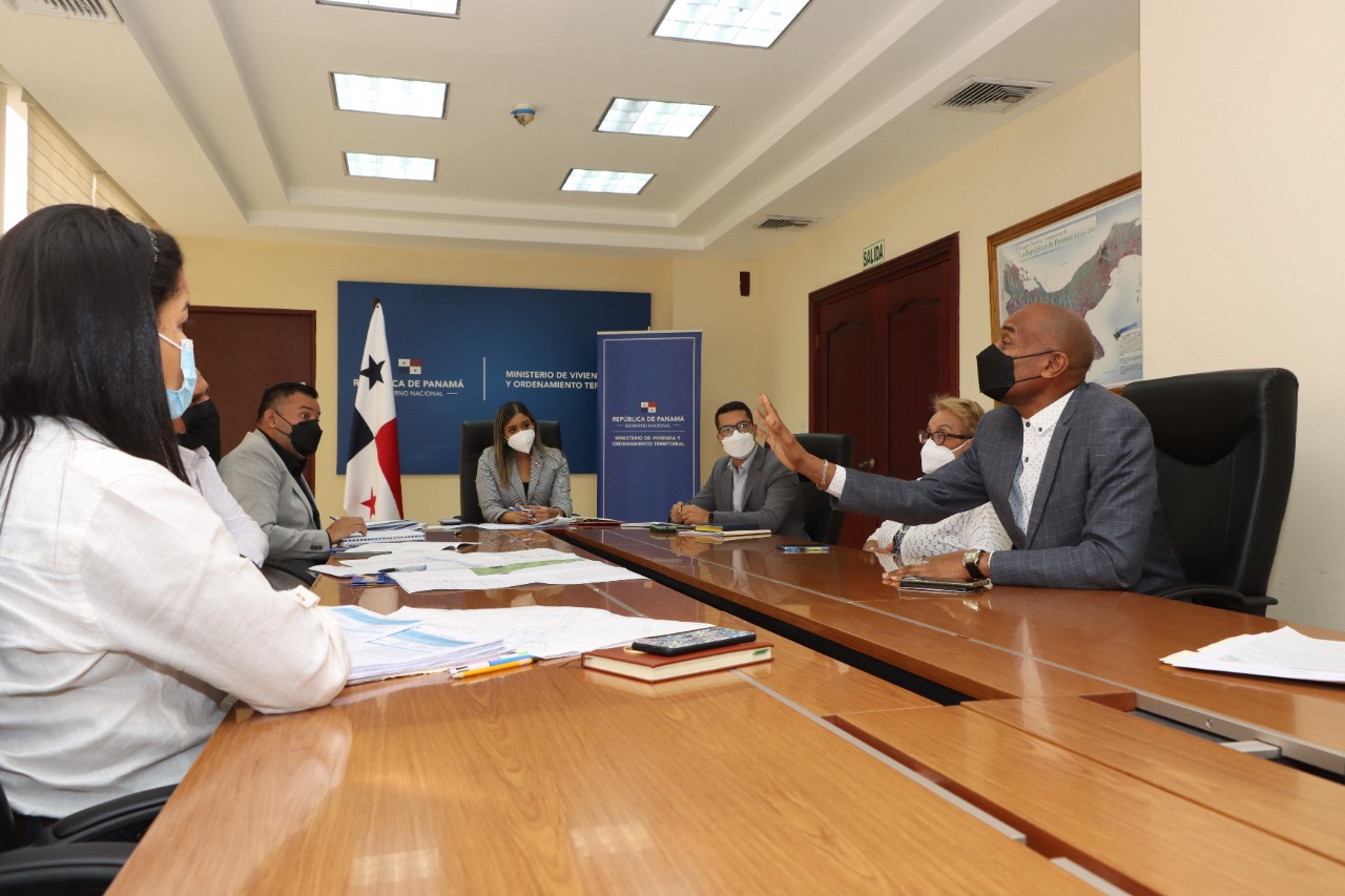 La viceministra de Vivienda, Daniela Martínez López, junto a la directora de Desarrollo Social, Virginia Miranda y el director de Asentamientos Informales, Fausto Palacios, así como asesores legales y técnicos de la institución, se reunieron con los ejecutivos y abogados de la empresa Etesa, Vidamides Morales, Rurik Vásquez y Junaryss Herrera.