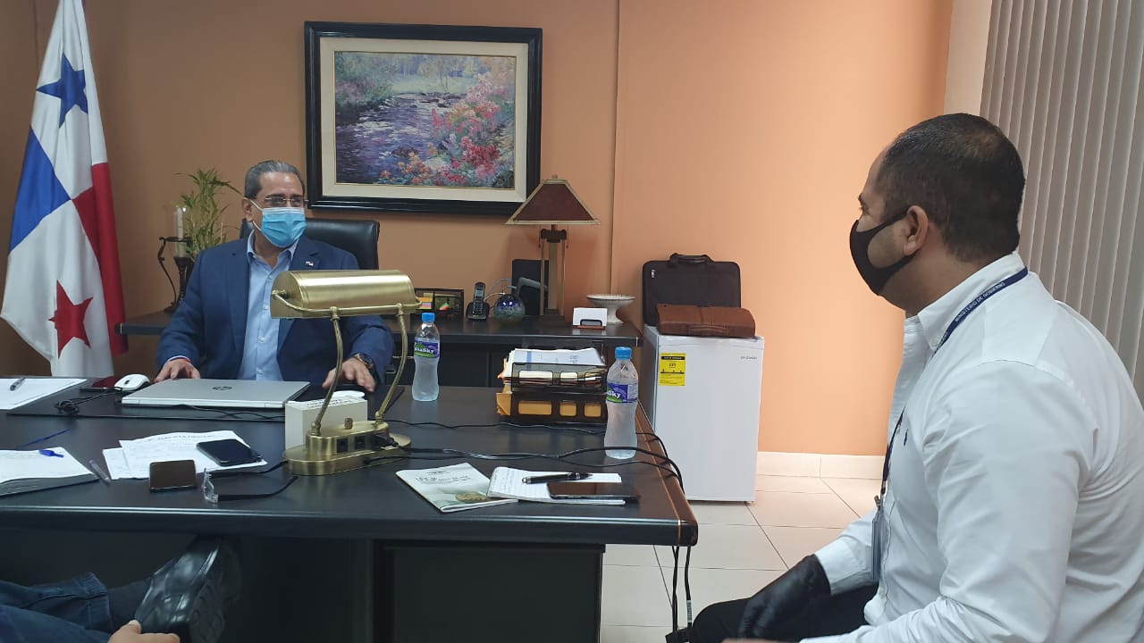 Panamá, 6 de mayo de 2020. Para alinear y estar claros en el cumplimiento y alcance del Decreto Ejecutivo No.145 de 2020 que suspende desalojos y lanzamientos durante la crisis sanitaria por el Covid-19, el viceministro de Vivienda, Rogelio Paredes, se reunió con Nicolás Rivera, fiscalizador de los jueces de Paz del Ministerio de Gobierno con los municipios del país.