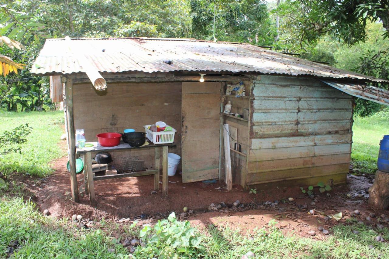 Durante el recorrido, se observó que algunas viviendas aun están construidas con materiales como zinc y madera, mientras que otras todavía cuentan con instalaciones sanitarias básicas como baños de letrinas.